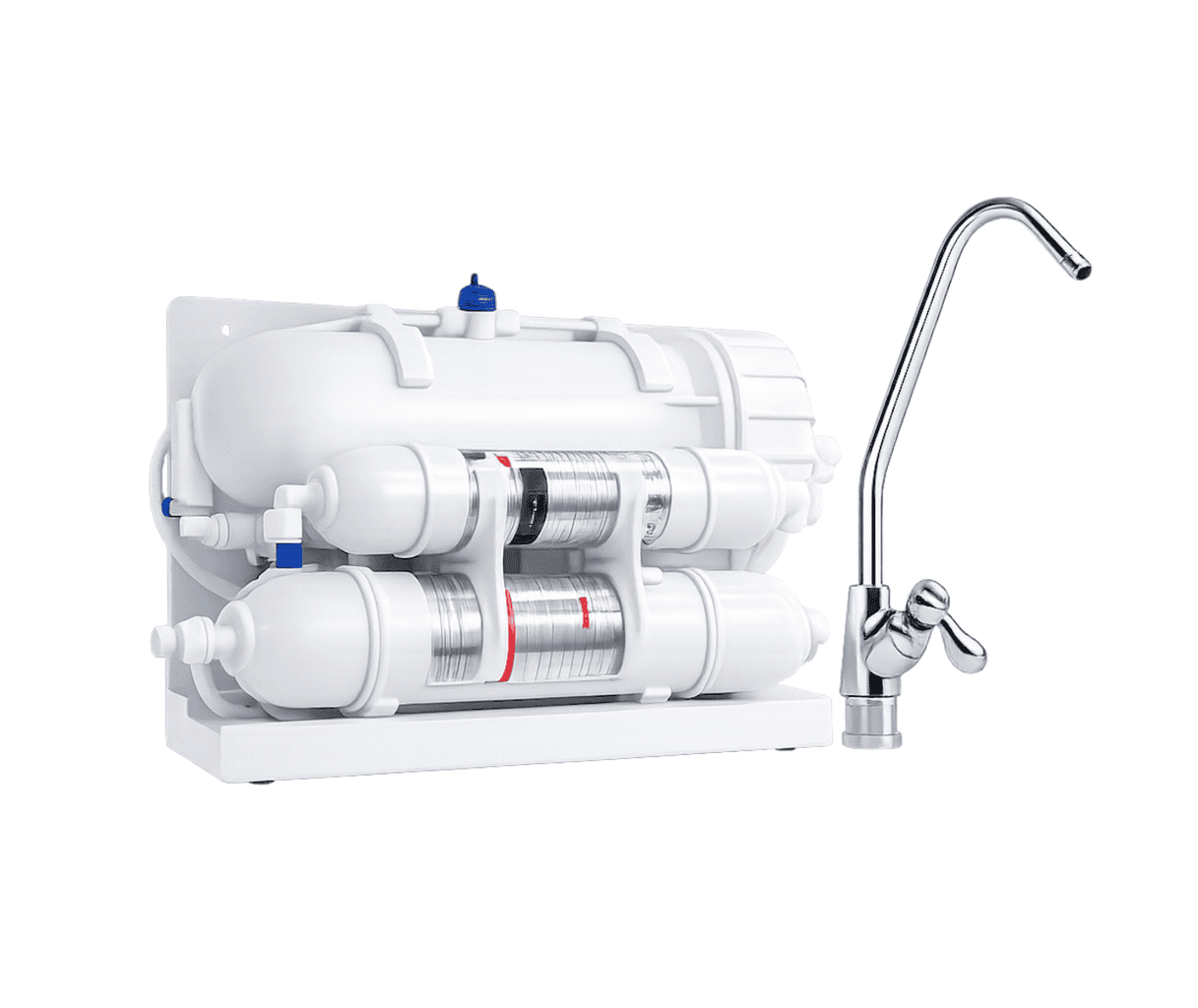 - Pöördosmoos (RO) filtratsioon kuni 99% saasteainete eemaldamiseks